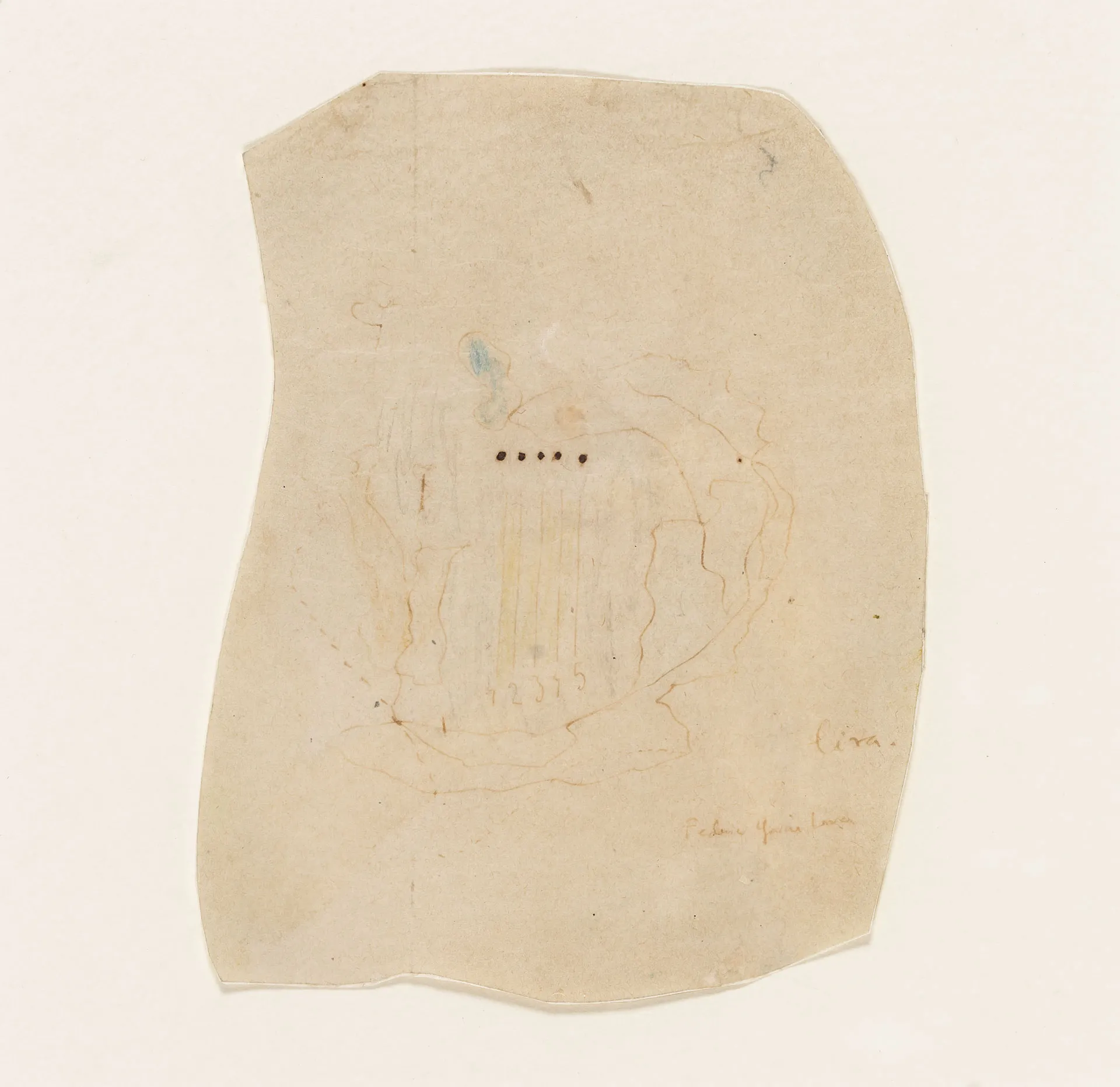 Logo del Museo Gregorio Prieto con líneas geométricas y estrella de siete puntas, en color beige sobre fondo transparente.